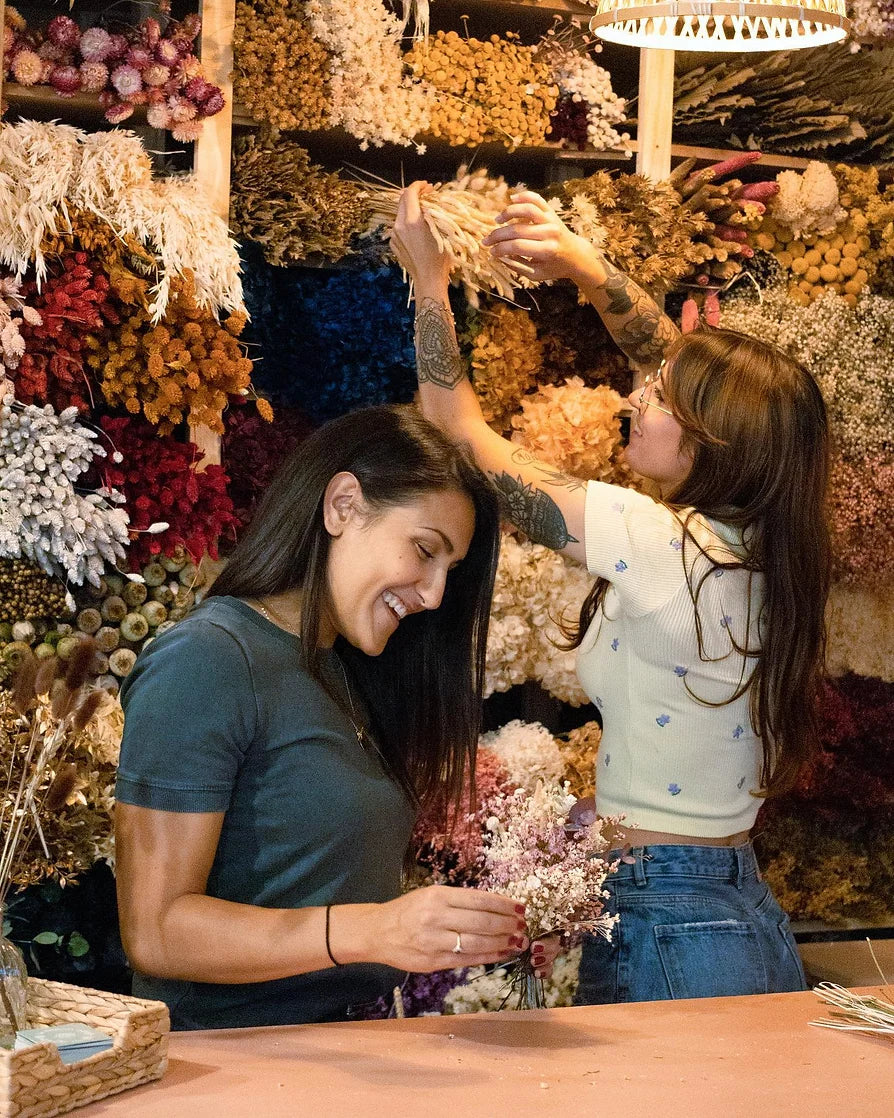 Après avoir suivi une formation sur l’art floral, nous tombons amoureuse de la poésie des fleurs séchées.